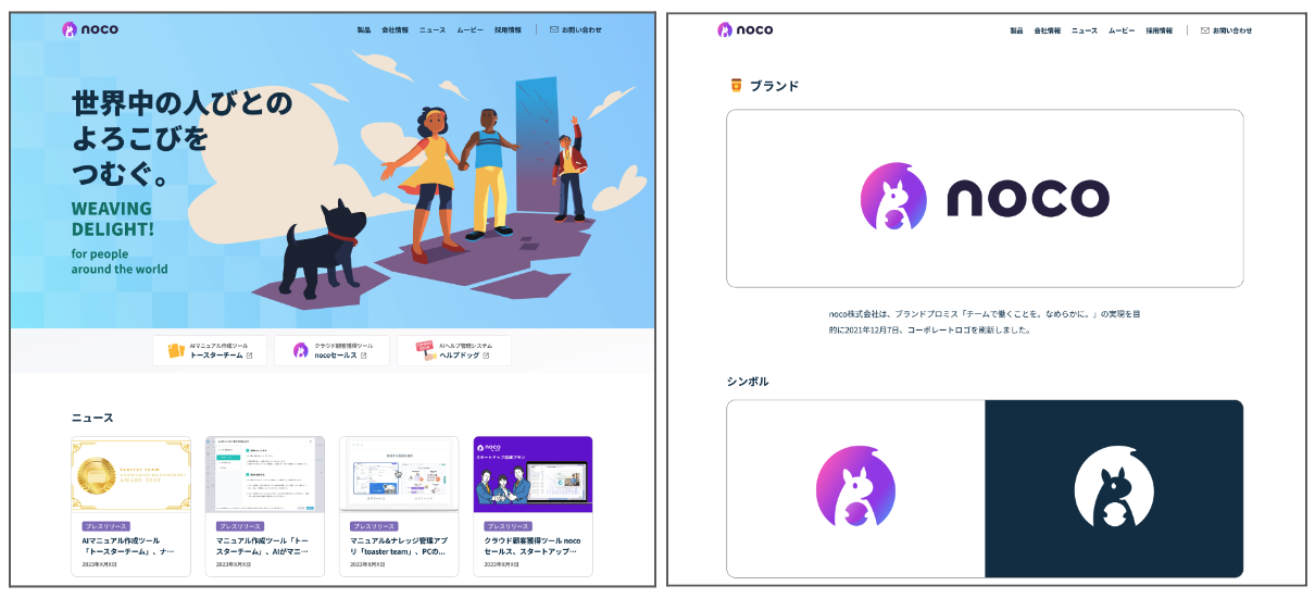 ミッション・ビジョン・ブランドステートメントの刷新に伴い、コーポレートサイトをリニューアルしました。会社情報が一目でわかるナビゲーションアイコンをはじめ、企業理念やブランドガイドラインのページを設けました。https://nocoinc.co.jp