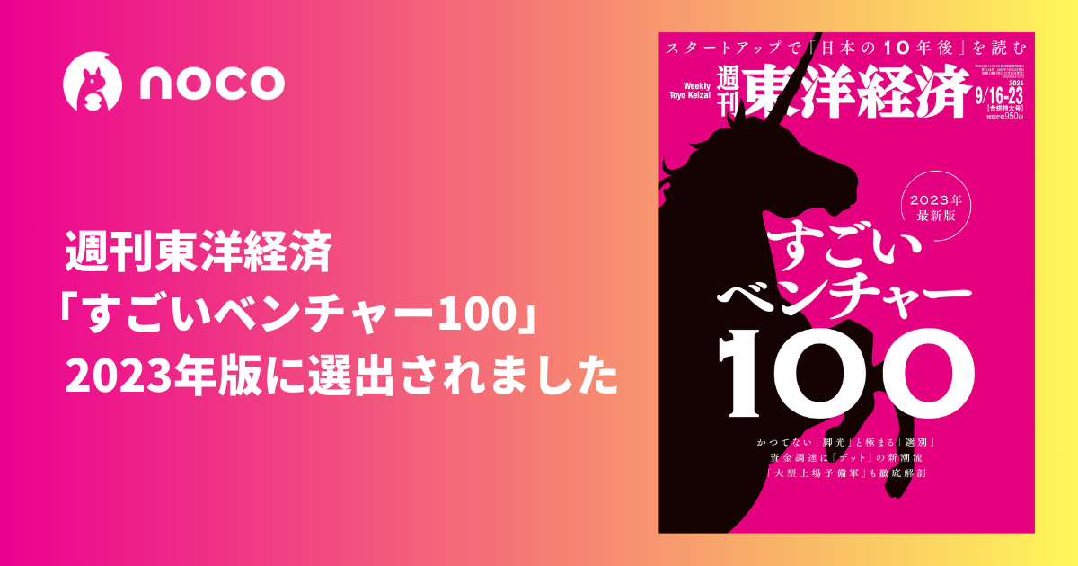 noco株式会社が、 週刊東洋経済「すごいベンチャー100」2023年最新版に選出されました